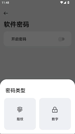 3、开启密码后,可以设置指纹或数字密码