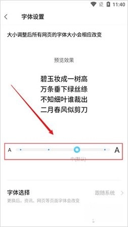 4、最后,在字体设置页面中,通过滑动调节条即可调整字体大小。