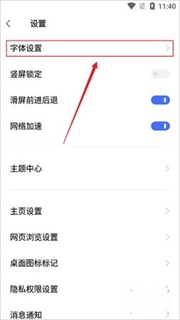 3、进入设置页面后,找到并点击【字体设置】选项。