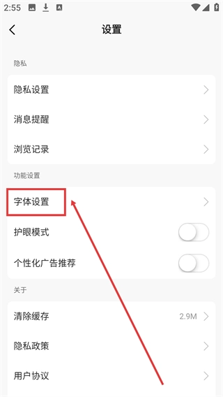 3、在设置页面中,找到【字体设置】选项,点击该选项可进入字体配置页面,调整字体相关显示参数。