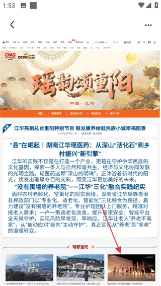 在地方频道页面,点击“瑶韵颂重阳”,就能进入对应的内容详情页。