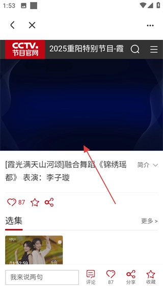 在瑶韵颂重阳的详情页面,能够进入江华重阳特别节目的播放页面。