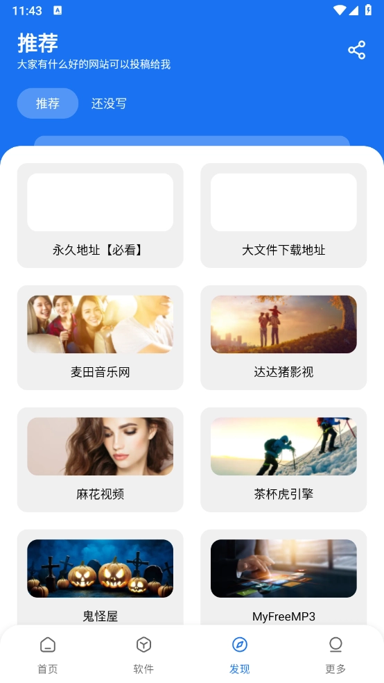 在“发现”板块,这里汇聚了丰富的网址资源,你也能分享那些自己觉得优质的网址。