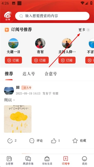 在合意的首页,点击底部的订阅号选项,进入订阅号页面。