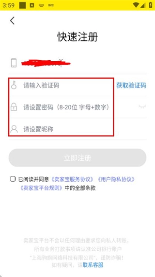 在注册账号页面填写验证码与密码,勾选相关协议后,点击“立即注册”按钮,即可完成账号注册流程。