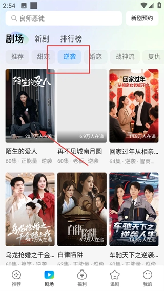 在剧场页面点击逆袭分类标签,点击感兴趣的短剧。