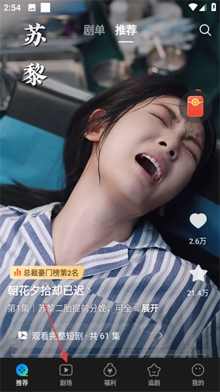 在速看短剧的推荐页面,点击底部的剧场选项,就能进入剧场页面。