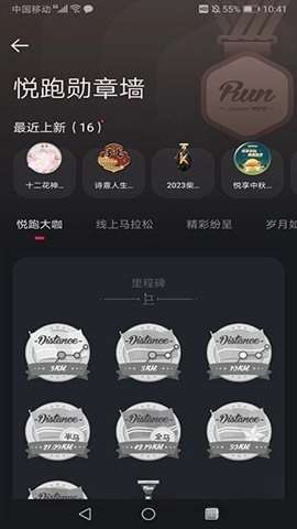 各类彰显个性的勋章模板以及为用户量身打造的专属勋章;以荣誉勋章墙形式呈现的成长历程记录;跑步成就相关的展示与分享内容。