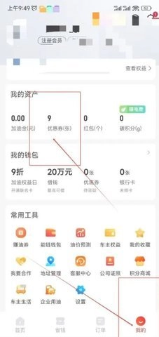 打开能链团油应用,进入“我的”页面,然后点击“优惠券”选项。