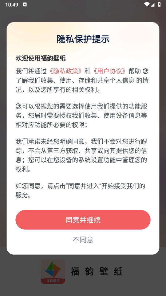 安装福韵壁纸,同意相关的政策与协议。