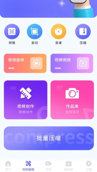 【剪辑处理】借助编辑工具对视频进行修剪、拼接、调速与裁剪操作,同时支持批量视频压缩。