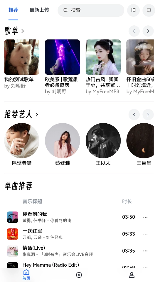 安装“音乐天堂”应用,进入首页后,你可以浏览海量歌曲资源,还能获取当下最新、最热门的音乐推荐。