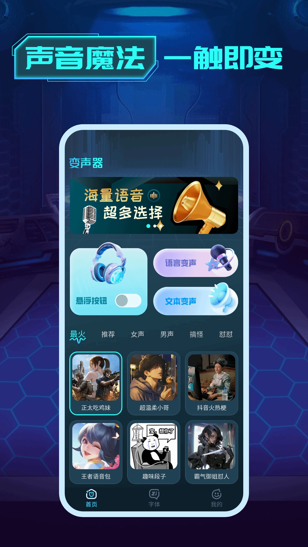 变声器变声工坊是一款专注于语音包变声的创新应用,为用户打造了全新的音频娱乐与创意制作平台。它既能满足用户在社交媒体分享搞笑语音包的需求,也能为视频制作提供独特旁白,助力用户开展多样化音频创作。用户可轻松将创意转化为生动有趣的音频内容,增强个人表达的趣味性与创意性。