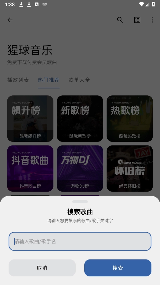进入首页后,能看到丰富多样的音乐资源分类,像抖音热门歌曲、最新上线的歌曲榜单以及当下最火的热歌排行榜等都包含在内。