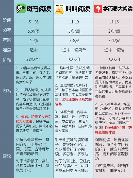 叫叫阅读、学而思和斑马阅读各自有着不同的侧重点与优势,接下来具体讲讲每个阅读产品的强项所在,家长们可以结合孩子的实际情况进行选择。