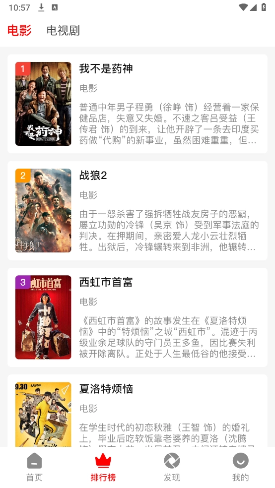 在排行榜页面,能够实时了解当前最新、最热门的影视榜单情况。