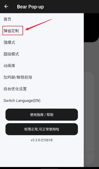 在侧边菜单中点击'弹窗定制'即可进入定制界面。