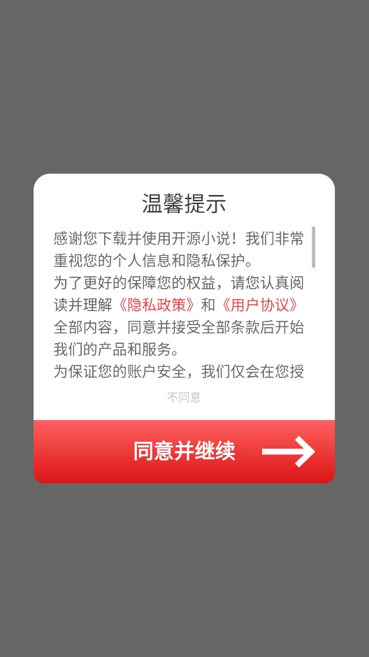 安装开源小说软件,同意相关的政策与协议之后打开。