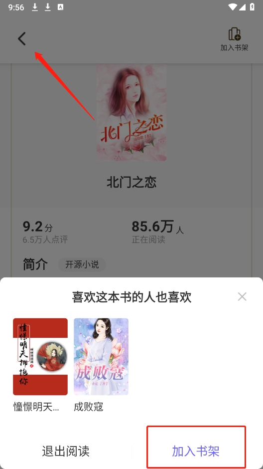 点击剪头指示标志,点击“加入书架”。