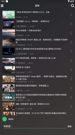 进入搜索页面。在底部的输入框中填写你想要聆听的音乐名称,就像我在这里输入“神思者”一样。