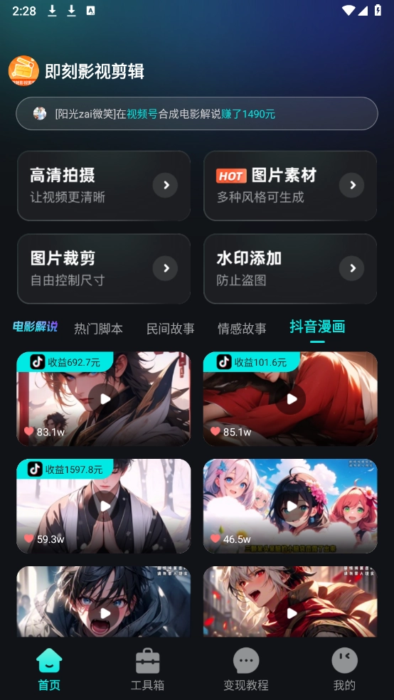 即刻影视剪辑软件是一款免费的手机视频剪辑工具,拥有丰富的剪辑模板、素材、背景音乐和配音等资源,能够满足各类视频制作需求。软件提供了大量搞笑配音和多样化的字幕样式,无论是记录日常生活,还是作为视频博主进行创作,都非常适用。