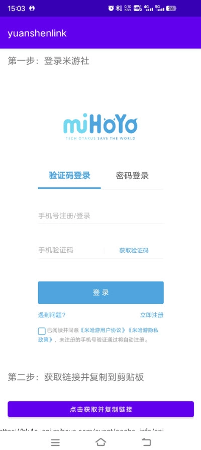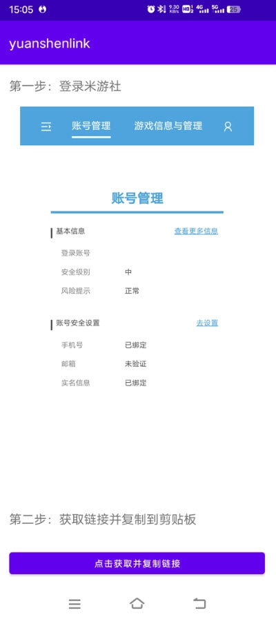在当前页面完成yuanshenlink软件的安装操作,随后启动该软件,并使用个人的米游社账号进行登录。