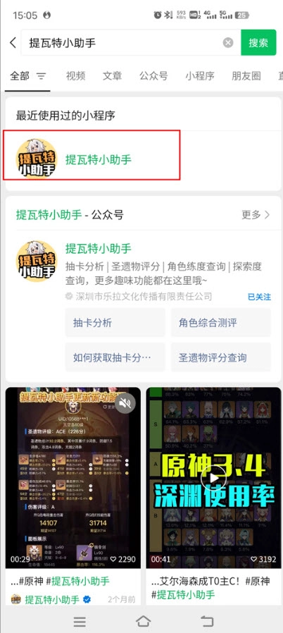 打开个人微信,搜索并进入“提瓦特小助手”微信小程序。
