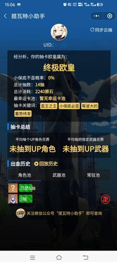 稍等几秒,你就可以看到自己的全部抽卡数据啦。