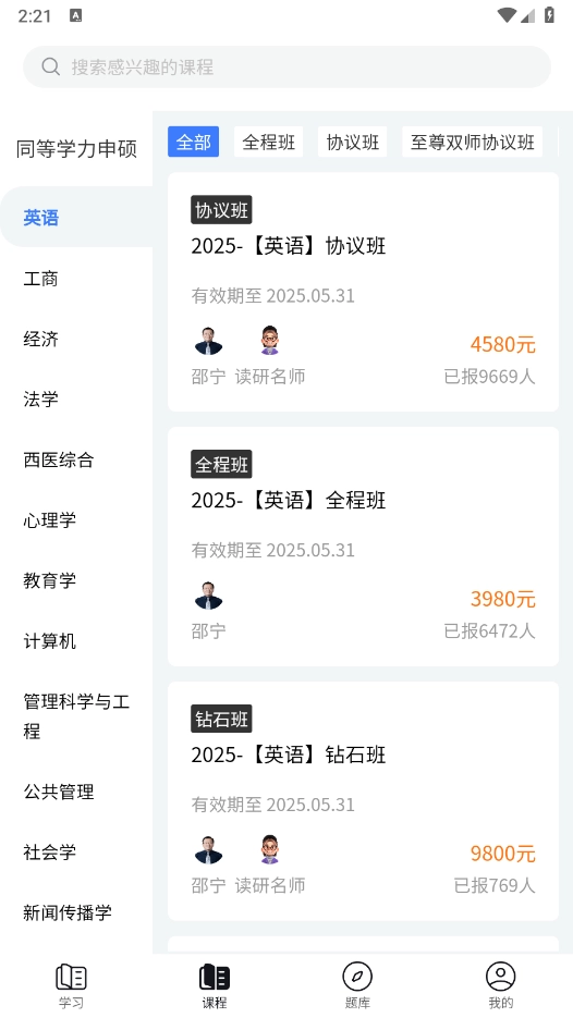 打开软件后,找到“课程”板块,这里汇聚了各类专业的课程,涵盖经济学、法学、心理学等多个领域。