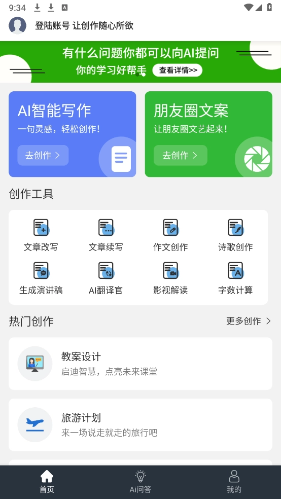 鸿捷AI写作是一款依托AI技术打造的智能写作生成工具,涵盖了作文、文案、活动策划等多个实用板块。用户只需输入关键词,系统就能快速生成精准的内容方案,轻松解决写作难题,帮助用户告别创作瓶颈期。此外,它还具备AI问答功能,能为用户解答各类疑问。