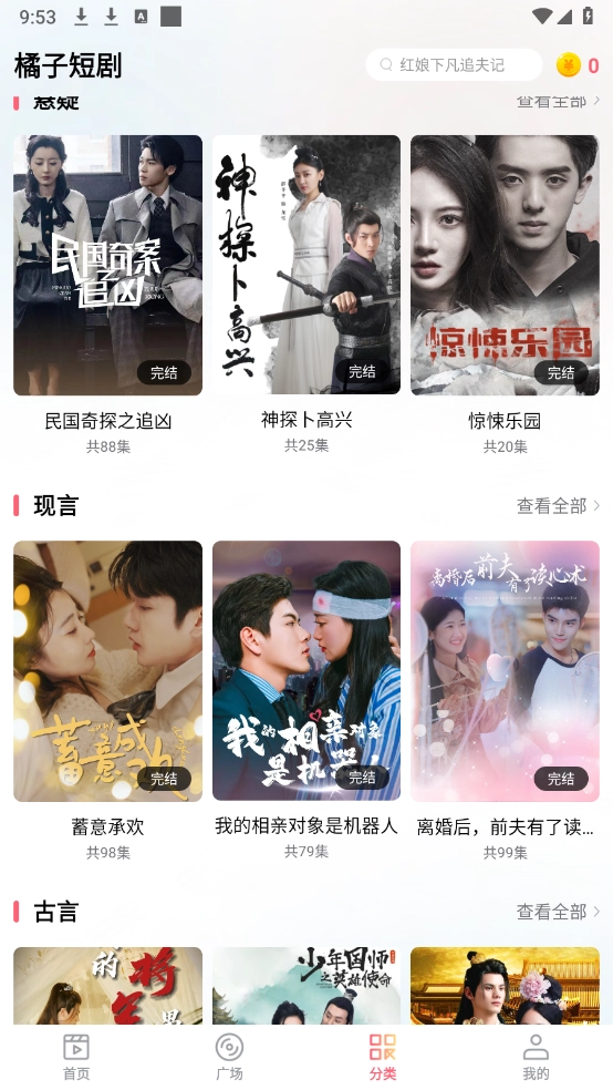 进入首页,平台为用户呈现了丰富多样的短剧类型,涵盖言情、都市、青春等不同题材。