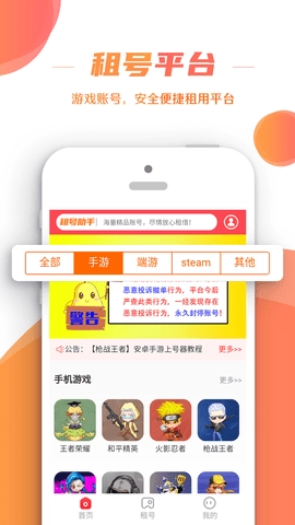 租号助手软件是衡阳市邓众网络科技有限公司打造的账号交易平台,支持全平台账号通过登号器或账密两种方式登录,还设有15分钟免费体验机制——用户成功租号后,若对账号不满意,可在15分钟内无条件申请退款,助力用户获得更安心的交易体验。