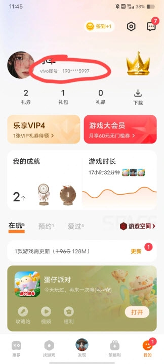 进入游戏中心我的主页,然后点击上面的vivo账号