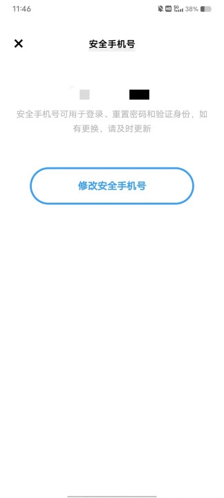 修改安全手机号,确认没问题且修改成功后,就能跳转到最后一张图片了。之后退出当前账号,重新登录一下就可以。