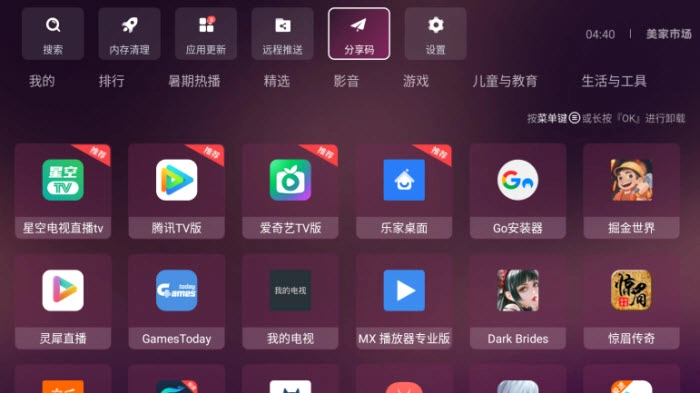 使用美家市场,你能在自家智能电视、电视盒子等设备上安装各类实用应用程序,像电视直播、影视类应用都能轻松获取。平台设有丰富且细致的软件分类,助你快速定位所需应用。所有应用均为本地资源,安全绿色无风险,有了它,你的电视使用体验将更上一层楼。