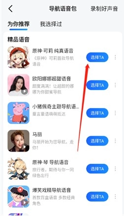 5. 在导航语音包列表里找到茉莉语音包,点击【选择她】。