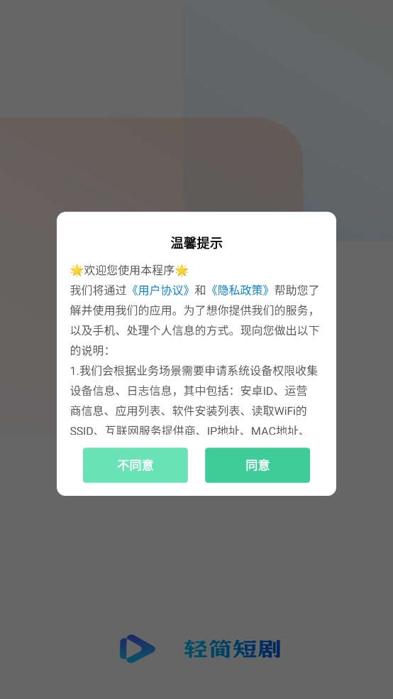 安装好轻简免费短剧,查看并同意相关政策与协议。