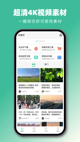 抖素材除了提供视频素材外,还配备了热门文案,让用户无需再为视频文案发愁。用户可以一键复制粘贴使用,这里有各种各样的高质量文案。用户发布视频时,就不用再为写文案而烦恼了。对于电商从业者而言,抖素材是一个十分实用的工具。它能帮助用户获取淘宝、天猫、京东、拼多多等电商平台的商品视频和图片,并且可以一键保存到手机,不用担心水印问题。这对带货工作来说非常便利,能够提升工作效率。