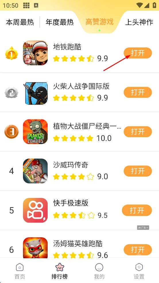 2、排行榜设有本周最热、年度最热以及上头神作这几个类别,大家可以根据自己的喜好自由选择查看。