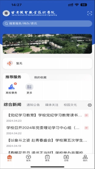 校园信息查询服务:可获取校园新闻、通知公告、活动资讯等实时更新的内容。