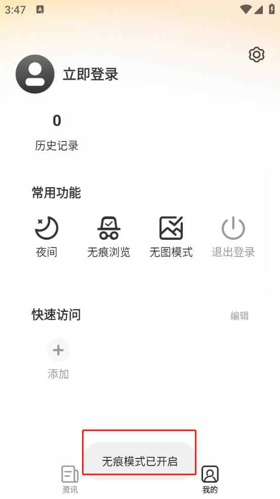 提示“无痕模式已开启”即可,接下来进行的就是无痕搜索。