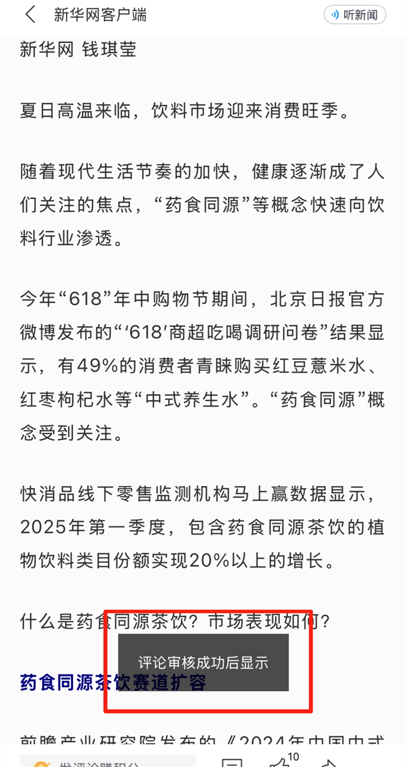 点击发送后,内容需经过审核流程,待审核通过,就会展示在文章的下方。