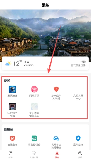 首先在手机的应用商店里搜索“浮梁融媒”,安装完成后打开该应用,不需要注册就能直接进入主界面。