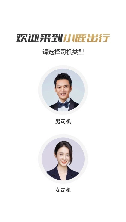 2、可依据个人需求选择司机性别分类,系统设有男女司机两种选项,点击相应图标即可继续后续操作。