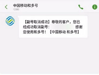 稍后您会收到取消成功的短信,收到短信后,副号就注销完成了,具体情况可以参考下方图片。