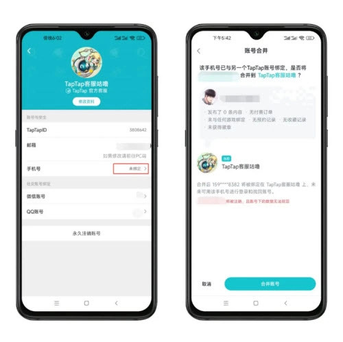 TapTap目前仅支持通过手机号注册账号,部分玩家在使用手机号登录时可能误注册了新账号。为方便这类用户进行绑定,对于注册时间在7天内、未完成实名认证且未购买过游戏的TapTap账号,可通过账号合并功能,将该手机号快捷绑定至主账号上。