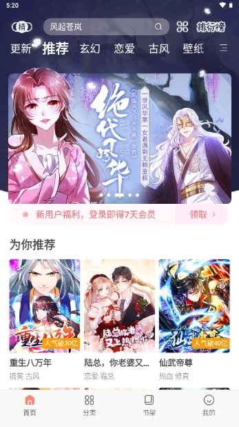 1.「推荐频道」每日提供最新、最夯的漫画与专题;