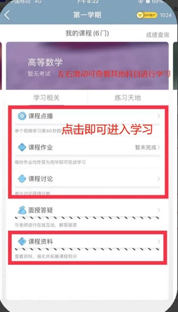 2、完成课程点播、课程作业、课程讨论、面授答疑以及课程资料查看。