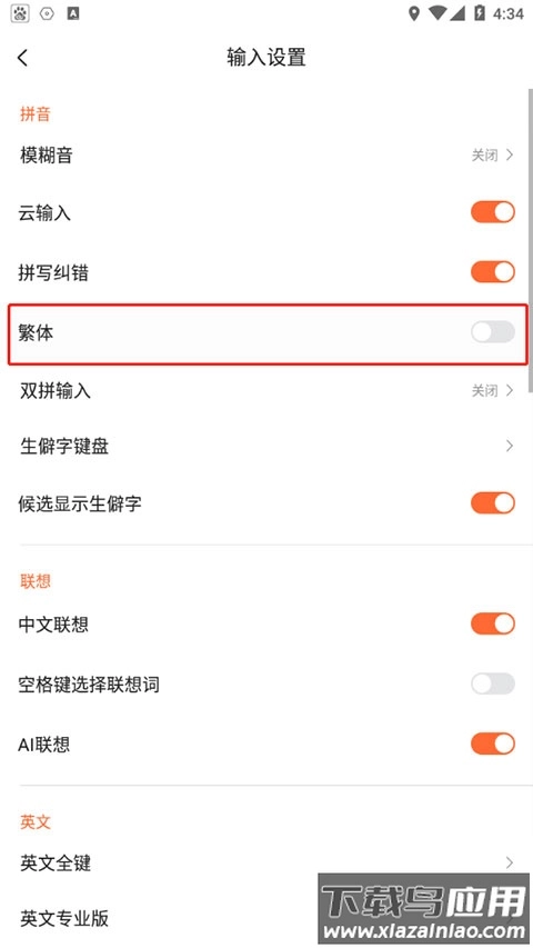 3. 开启繁体输出模式开关。