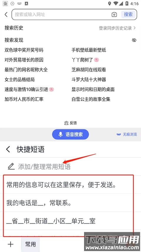 2. 进入快捷短语管理界面;